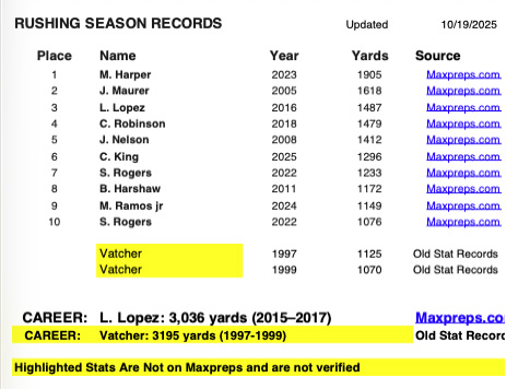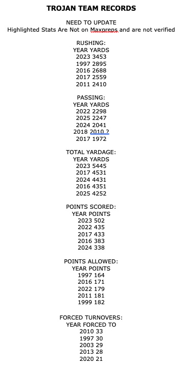 Trojan Football Individual Records